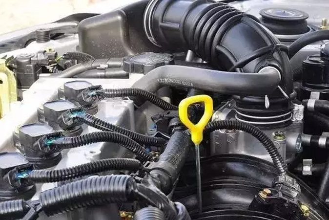 2、关闭发动机等候10-15分钟左右,让机油会全部回流至油底壳后查看。如果是经常需要查看话,可以在早晨启动车辆之前查看,此时的机油油面高度也是准确的。检查机油尺时,车的四个轮子停在同个一水平高度上。一旦车身有倾斜,油底壳内的机油液面就会改变,测量结果不准。